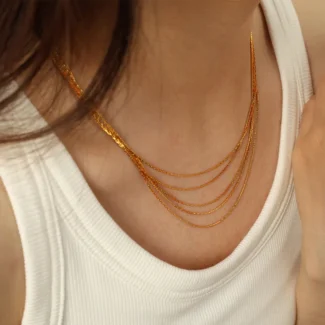 • Material: Acero inoxidable 304 chapado en oro de 18k, cuerda de bufanda