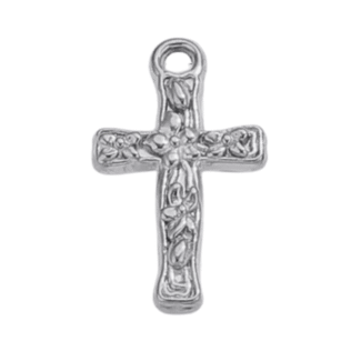 11mm – Dije de Cruz con Flores Plateada