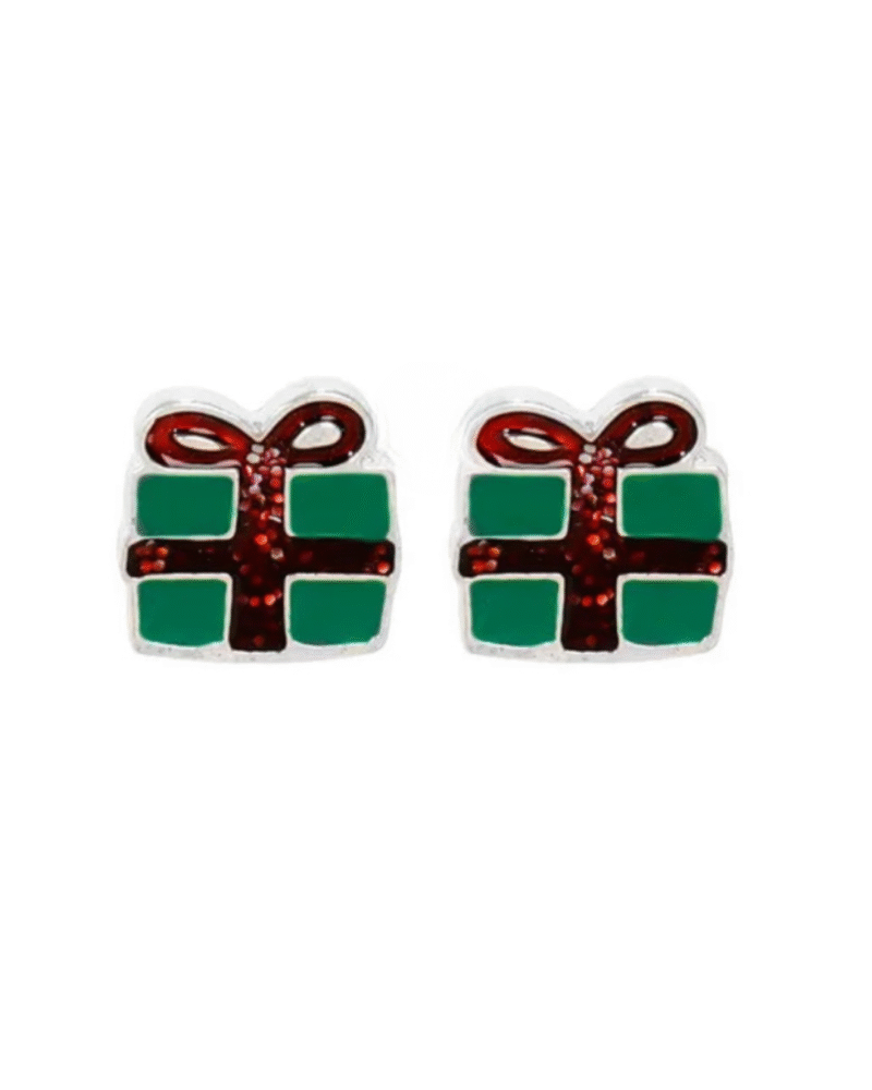 Aretes navideños de regalo rojo y verde