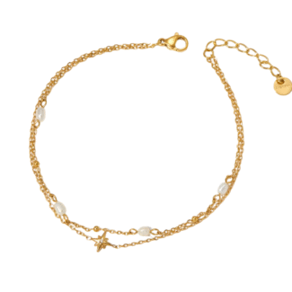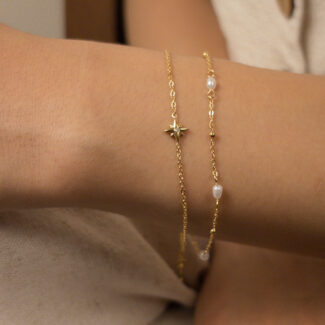 - Material: Acero inoxidable 304 chapado en oro de 18k, perla de río